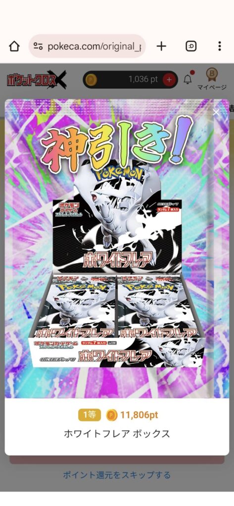 • 330ptのオリパから「ホワイトフレアBOX」を獲得!